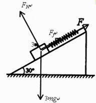 用轻弹簧竖直悬挂质量为m的物体,静止时弹簧伸长量为L.现用该弹簧沿斜面方向拉住质量为3m的物体,系统静止时弹簧伸长量也为L.斜面倾角为30°,如图所示.则物体所受摩擦力( )![]()