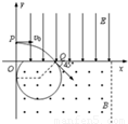 如图,在xoy平面第一象限整个区域分布匀强电场,电场方向平行y轴向下,在第四象限内存在有界匀强磁场,左边界为y轴,右边界为x=(1)P点坐标;