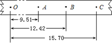 在用落体法验证机械能守恒定律时, 某同学按照正确的操作选得纸带如图。其中O是起始点,A、B、C是打点计时器连续打下的3个点.该同学用毫米刻度尺测量O到A、B、C各点的距离,并记录在图中(单位cm)。