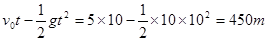 (4分)气球以5 m/s的速度匀速竖直上升,从气球上掉下一个物体,经10 s到达地面.则物体刚脱离气球时离地面的高度为 。(g=10 m/s2).