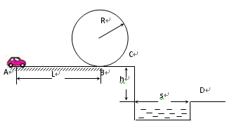 ÔÚÒ»´ÎÌØ¼¼±íÑÝÖУ¬Ò»µç¶¯Ð¡³µµÄÔ˶¯Â·¾¶Ô˶¯ÈçͼËùʾ£¬Ð¡³µ´ÓAµãÓɾ²Ö¹³ö·¢£¬ÑØ´Ö²ÚµÄˮƽֱ¹ìµÀÔ˶¯Lºó£¬ÓÉBµã½øÈë°ë¾¶ÎªRµÄ¹â»¬ÊúÖ±Ô²ÐιìµÀ£¬Ô˶¯Ò»ÖܺóÓÖ´ÓBµãÀ뿪Բ¹ìµÀ½øÈëˮƽ¹â»¬¹ìµÀBC¶Î£¬ÔÚCÓëÆ½ÃæD¼äÊÇһˮ³Ø.ÒÑ֪С³µÖÊÁ¿m=0.1kg¡¢L=10m¡¢R=0.32m¡¢h=1.25m¡¢s=1.50m£¬ÔÚAB¶ÎËùÊÜ×èÁ¦Îª0.3N.С³µÖ»ÔÚAB·¶Î¿ÉÒÔÊ©¼ÓÇ£ÒýÁ¦£¬Ç£ÒýÁ¦µÄ¹¦ÂÊΪP=1.2W£¬ÆäËû·¶Îµç¶¯»ú¹Ø±Õ.ÎÊ£ºÒªÊ¹Ð¡³µÄܹ»Ë³Àûͨ¹ýÔ²ÐιìµÀµÄ×î¸ßµãÇÒÄÜÂäÔÚÓÒ²àÆ½Ì¨DÉÏ£¬Ð¡³µµç¶¯»úÖÁÉÙ¹¤×÷¶à³¤Ê±¼ä£¿