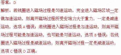 D.若线圈进入磁场过程是减速运动,则离开磁场过程一定是减速运动