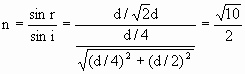 如下图所示,一储油圆桶,底面直径与高均为d,当桶内无油时,从某点A恰好能看到桶底边缘上的某点B,当桶内油的深度等于桶高的一半时,在A点沿AB方向看去,看到桶底的C点,C、B相距