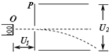 如图所示,初速度不计的电子从电子枪中射出,在加速电场中加速,从正对P板的小孔射出,设加速电压为U1,又垂直偏转电场方向射入板间并射出,设偏转电压为U2。则: