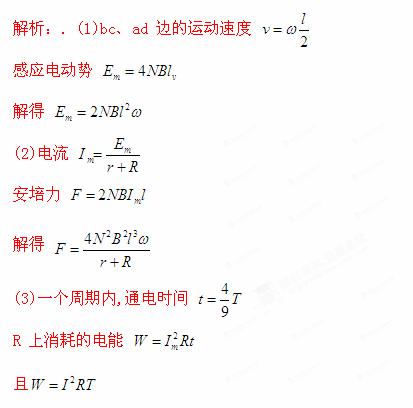 边长ab =cd =、bc =ad =2. 线圈以角速度棕绕中心轴匀速转动,bc和ad 边同时进入磁场. 在磁场中,两条边所经过处的磁感应强度大小均为B、方向始终与两边的运动方向垂直. 线圈的总电阻为r,外接电阻为R. 求: