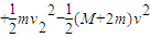 m(v1-v2)=(M+2m)v,