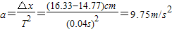 解答:解:①利用匀变速直线运动的推论△x=aT2求出物体下落的加速度为: