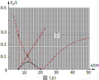 (4)得出图象如下所示,注意几个特殊位置,x2=6cm处的动能为Ek=0;x3=12cm处的动能Ek=0.06J,x4=20cm处的动能Ek=0J.