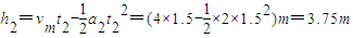 vt=vm-a2t2=4-2×1.5=1m/s