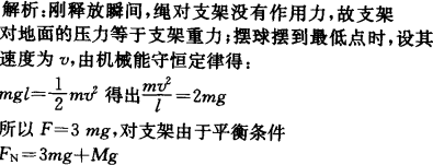 D.摆球到达最低点时,支架对地面压力为(3m+M)g