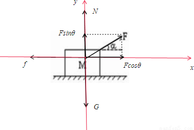 如图所示,位于水平地面上的质量为M的小木块,在大小为F,方向与水平方向成α角的拉力作用下沿地面做匀速直线运动.求:(1)地面对物体的支持力