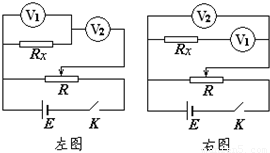 左图中电压表V1和Rx并联电阻约为420Ω,两图都满足题中要求“电压表的读数不小于其量程的
