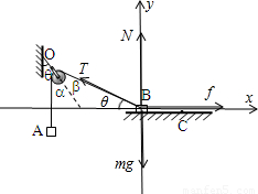 【答案】分析:当把物体B移至C点后,绳子BO与水平方向的夹角变小,对A和B分别受力分析,然后运用共点力平衡条件结合正交分解法进行分析.