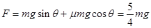 ,沿斜面向上的拉力F,三个力处于平衡状态,故![]()