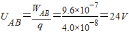 可求得:WAB=4.0×10-8×1.2×102×0.2=9.6×10-7J