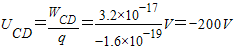 故C、D两点间的电势差为-200V.