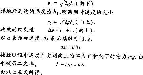 解析:将运动员看作质量为m的质点,从h1高处下落,刚接触网时速度的大小为