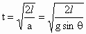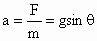 对小球进行受力分析,它受到斜面的支持力和重力的作用,合外力 F=mgsinθ,方向沿斜面向下,产生的加速度 |