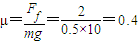 解答:解:由v-t图可知4-6s,物块匀速运动,有Ff=F=2N.