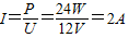 解答:解:(1)灯泡的规格为“12V、24W”,由此可知其额定电流为: