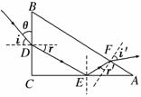 的光线射向BC面,经过AC面一次反射,再从AB面射出,则从AB面射出的光线的折射角是多少?