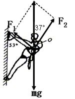 如图所示,一攀岩运动员正沿竖直岩壁缓慢攀登,由于身背较重的行囊,重心上移至肩部的O点,总质量为60kg。此时手臂与身体垂直,手臂与岩壁夹角为53o。则岩壁对手和脚的作用力大小分别为多大?(假设手、脚受到的作用力均通过重心O,sin53o=0.8,cos53o=0.6)