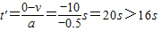 =6t,解得t=0(舍去)t=16s.汽车做匀减速直线运动到零所需的时间