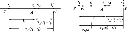 ¡¡¡¡½âÎö£º(1)Éèt1¡¢t2ΪÉùÔ´S·¢³öÁ½¸öÐźŵÄʱ¿Ì£¬ ¡¡¡¡ÉèÉùÔ´·¢³öµÚÒ»¸öÐźÅʱ£¬S¡¢AÁ½µã¼äµÄ¾àÀëΪL£¬Á½¸öÉùÐźŴÓÉùÔ´´«²¥µ½¹Û²ìÕߵĹý³ÌÖУ¬ËüÃǵÄÔ˶¯µÄ¾àÀë¹ØÏµÈçͼËùʾ£¬