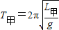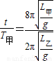 【答案】分析:根据单摆的周期公式分别表示出甲乙的周期,再算出甲摆动4次的时间,乙摆动的次数等于甲摆动的时间除以乙的周期.
