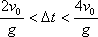 在地面上以初速度2v0竖直上抛一物体后,又以初速度v0从同一地点竖直上抛另一物体,若要使两物体能在空中相遇,则两物体抛出的时间间隔必须满足什么条件?