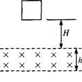 正方形导线框质量m=60 g,边长l=12 cm,电阻R=0.06 Ω.在竖直平面内自由下落H=5 m后,下边框进入如图所示的匀强磁场区域.磁场方向与线框面垂直,磁场区域沿竖直方向的宽度 h=l=12 cm,线框通过磁场时恰好做匀速运动(取g=10 m/s2).求:![]()