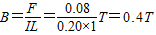 (2)导线受到的安培力为0.16N,磁感应强度为0.4T.