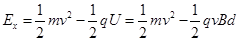 (12分)如图所示,质量为m、带电荷量为+q的粒子,从两平行电极板正中央垂直电场线和磁感线以速度v飞入.已知两极间距为d,磁感应强度为B,这时粒子恰能沿直线穿过电场和磁场区域.今将磁感应强度增大到某值,则粒子将落到极板上.已知粒子重力不计,则粒子落到极板上时的动能为多少?