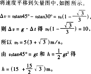 平抛运动的物体,在落地前的1 s内,速度方向由跟竖直方向成60°角变为跟竖直方向成45°角,求物体的初速度和初始高度.(g取10 m/s2)