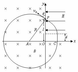 (2)通过作图可知(如图),粒子运动轨迹的圆心A恰好落在x轴上。 ④(2分)