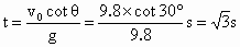 抛出的物体,飞行一段时间后,垂直地撞在倾角为θ=30°的斜面上,如图所示,可知物体完成这段飞行的时间是