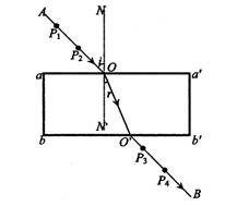 本题考查利用穿过平行玻璃砖的光路图计算折射率,P3挡住P1P2的像,P4挡住P3和P1、P2的像,由v=c/n可求出传播速度