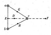 (2013四川省广元市期末) 在光滑的绝缘水平面上,有一个正三角形abc,顶点a、b、c处分别固定一个正点电荷,电荷 量相等,如图所示,D点为正三角形外接圆的圆心,E、 G、H点分别为ab、ac、bc的中点,F点为E点关于c 电荷的对称点,不计空气阻力。.下列说法中正确的是