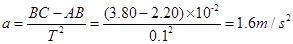 在 “研究匀变速直线运动”的实验中,图示是实验得到的一条点迹清晰的纸带,A、B、C、D为四个计数点,相邻两个计数点之间还有4个点未画出,经测量知道AB=2.20cm,BC=3.80cm,根据以上数据,可知打点计时器打下B点时物体的速度等于 m/s,物体的加速度等于 m/s2.