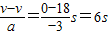 所以此时汽车没有停止运动,v=v+at=18-3×2m/s=12m/s