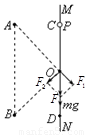(14分)如图所示,固定于同一条竖直线上的A、B是两个带等量异种电荷的点电荷,电荷量分别为+Q和-Q,A、B相距为2d.MN是竖直放置的光滑绝缘细杆,另有一个穿过细杆的带电小球p,其质量为m、电荷量为+q(可视为点电荷,不影响电场的分布.),现将小球p从与点电荷A等高的C处由静止开始释放,小球p向下运动到距C点距离为d的O点时速度为v,已知MN与AB之间的距离为d,静电力常量为k,重力加速度为g.求: