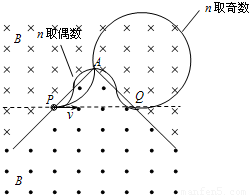 ÈçͼËùʾ£¬¿Õ¼äÄ³Æ½ÃæÄÚÓÐÒ»ÌõÕÛÏßÊǴų¡µÄ·Ö½çÏߣ¬ÔÚÕÛÏßµÄÁ½²à·Ö²¼×Å·½ÏòÏà·´¡¢ÓëÆ½Ãæ´¹Ö±µÄÔÈÇ¿´Å³¡£¬´Å¸ÐӦǿ¶È´óС¶¼ÎªB£®ÕÛÏߵĶ¥½Ç¡ÏA=90°£¬P¡¢QÊÇÕÛÏßÉϵÄÁ½µã£¬AP=AQ=L£®ÏÖÓÐÒ»ÖÊÁ¿Îªm¡¢µçºÉÁ¿ÎªqµÄ´ø¸ºµç΢Á£´ÓPµãÑØPQ·½ÏòÉä³ö£¬²»¼ÆÎ¢Á£µÄÖØÁ¦£®£¨1£©ÈôP¡¢Q¼äÍâ¼ÓÒ»Óë´Å³¡·½Ïò´¹Ö±µÄÔÈÇ¿µç³¡£¬ÄÜʹËÙ¶ÈΪvÉä³öµÄ΢Á£ÑØPQÖ±ÏßÔ˶¯µ½Qµã£¬Ôò³¡Ç¿Îª¶à´ó£¿·½ÏòÈçºÎ£¿