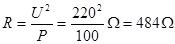 有一标有为“220V,100W”的灯泡,现用一标准的欧姆表测其电阻,测量结果其电阻
