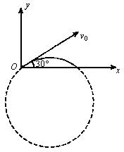 如图所示,在x O y平面内,电荷量为q、质量为m的电子从原点O垂直射入磁感应强度为B的匀强磁场中,电子的速度为v0,方向与x轴正方向成30°角,则电子第一次到达x轴所用的时间是多少?这时电子在x轴的位置距原点的距离是多少?![]()