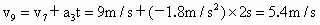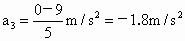 做匀加速运动.经3s后,做匀速直线运动前进4s;最后匀减速前进5s而停止于B,则:物体在第6s时的运动速度为________m/s;在第9s时的加速度a=________