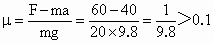 静止在水平地面上的物体,质量为20kg,现在用一个大小为60N的水平推力使物体做匀加速直线运动,当物体移动9.0m时,速度达到6.0m/s,求: