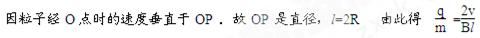 图中MN表示真空室中垂直于纸面的平板,它的一侧有匀强磁场,磁场方向垂直纸面向里,磁感应强度大小为B 。一带电粒子从平板上的狭缝O处以垂直于平板的初速v射入磁场区域,最后到达平板上的P 点。已知B 、v以及P 到O的距离l .不计重力,求此粒子的电荷q与质量m 之比![]()