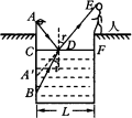 如图所示,设水面为CF,A到水面点C的距离为L1,B灯与水面点C之间的距离为L2,人眼到水面上点F之间的距离为L3,点C、D之间的距离为L4,由A灯光的反射得 得L4=5 m. 对B灯光的折射过程,有 即灯在水面下4.35 m深处.