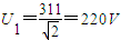 C.电压表V1的示数为311V