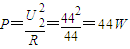 由输入功率等于输出功率,得 U1I1=P=44 得I1=